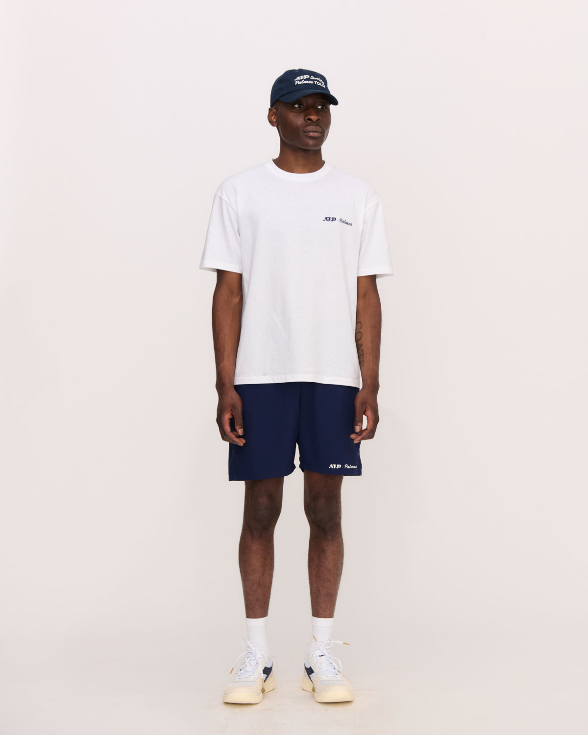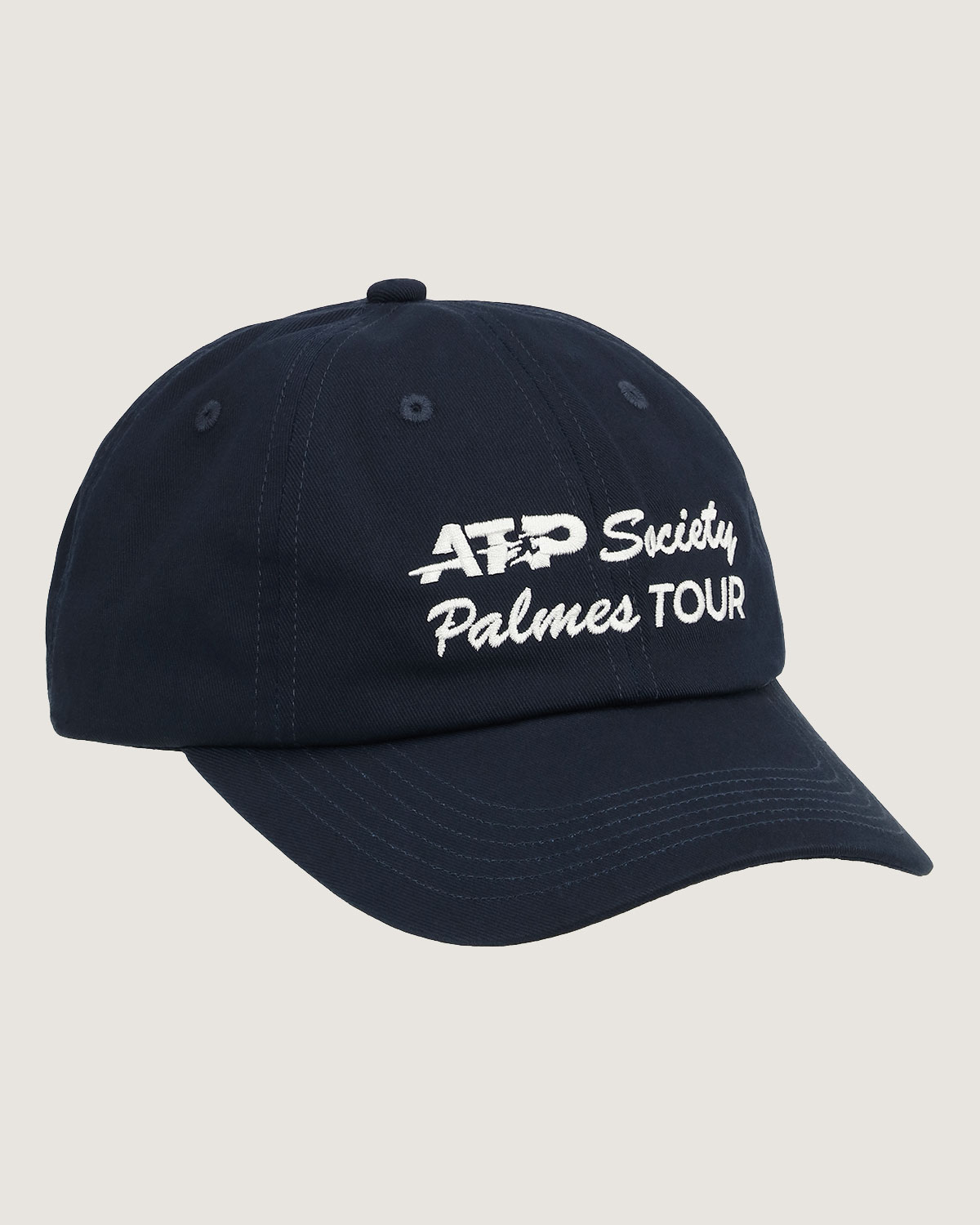 The ATP + Palmes Tour Cap. 100% recycled cotton. Embroidered logo. 6-panel construction. Adjustable strap closure.