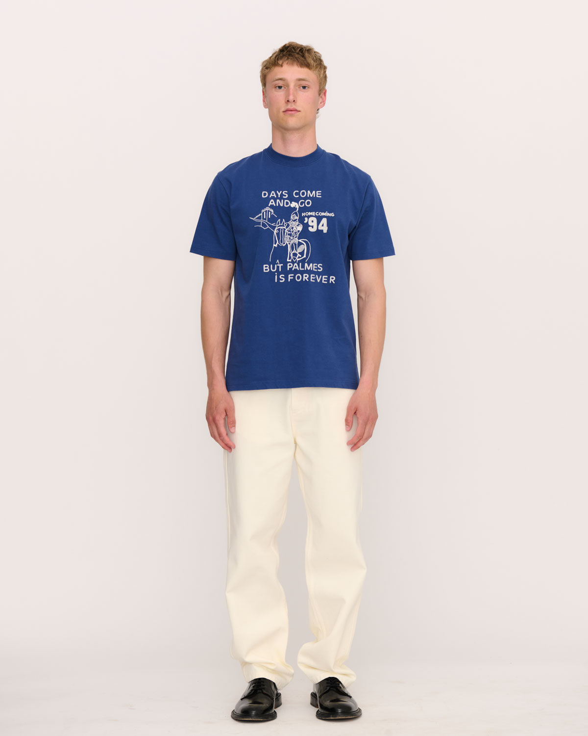 Made in garment-dyed 240gsm / 8.5oz cotton. Features chainstitch embroidered artwork on its front.