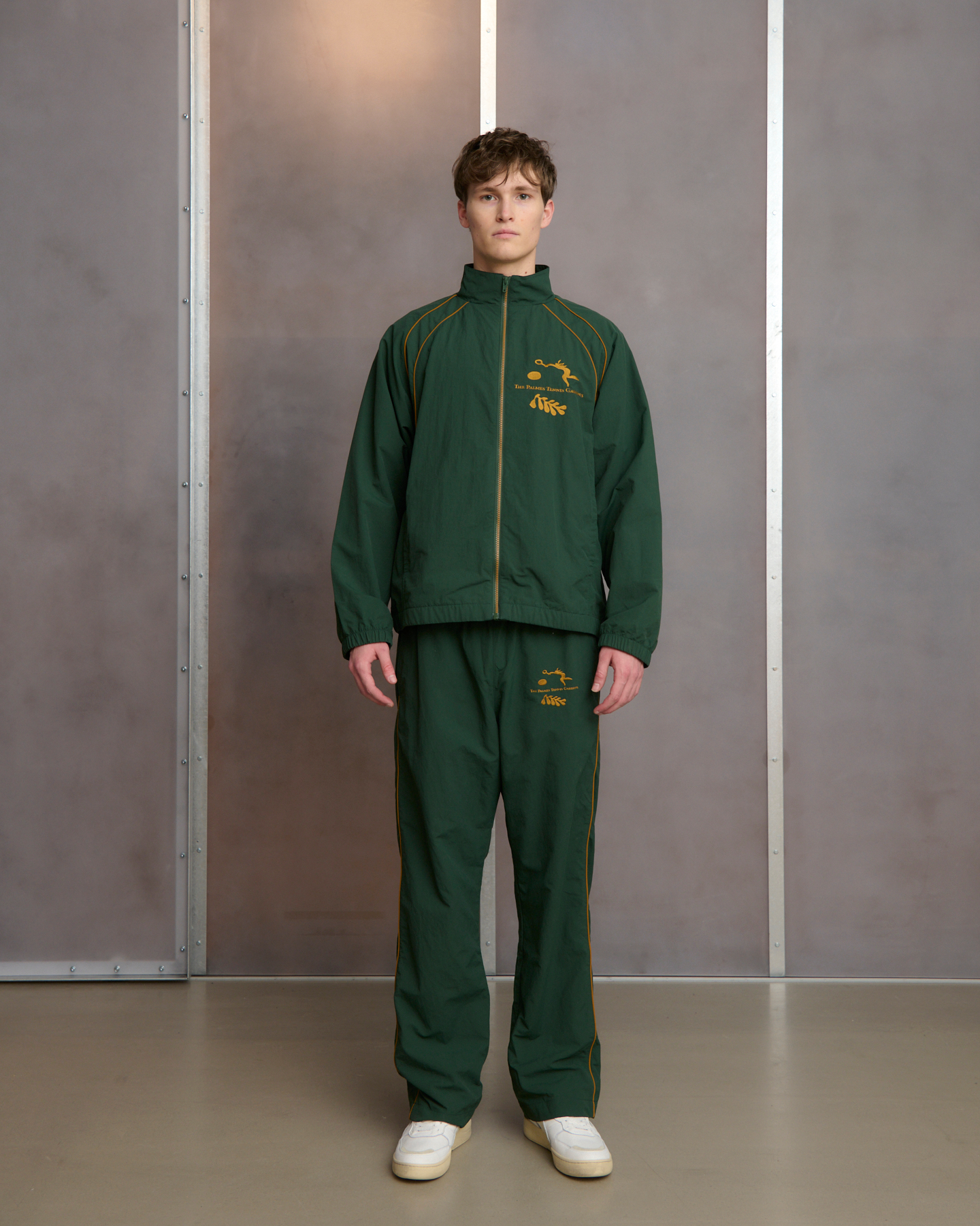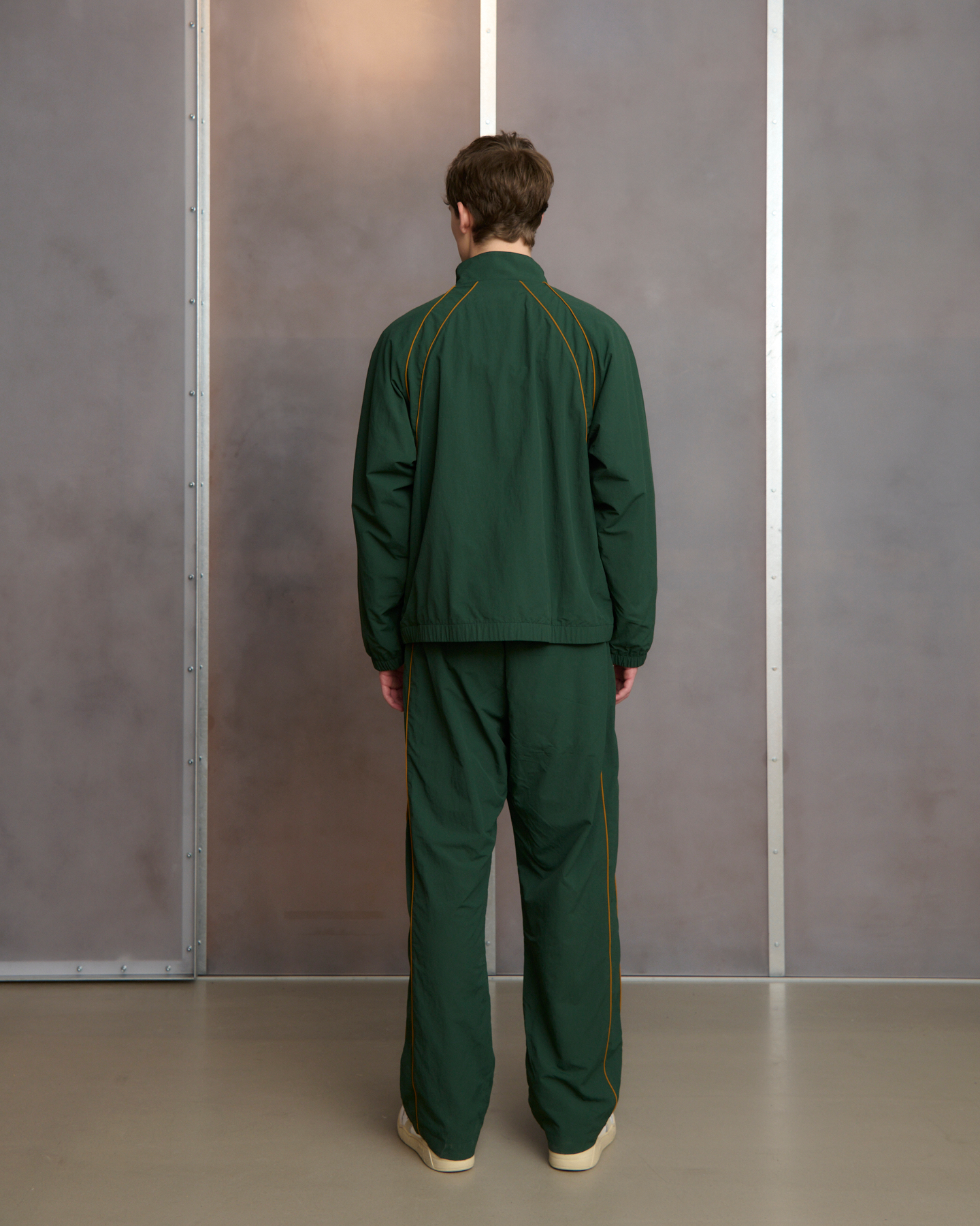 100% Recycled Nylon. It features an embroidery on left leg and contrast lining.