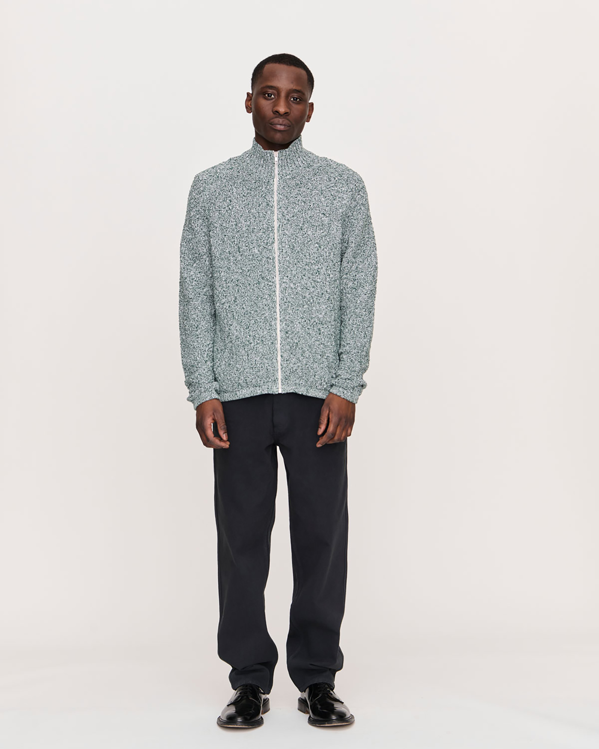 The archetypal rugby shirt reimagined, knitted in cotton yarn with a slightly open structure. Contrast collar, horn buttons and sewn-on rib at cuff. 90% Cotton. 10% Polyester.