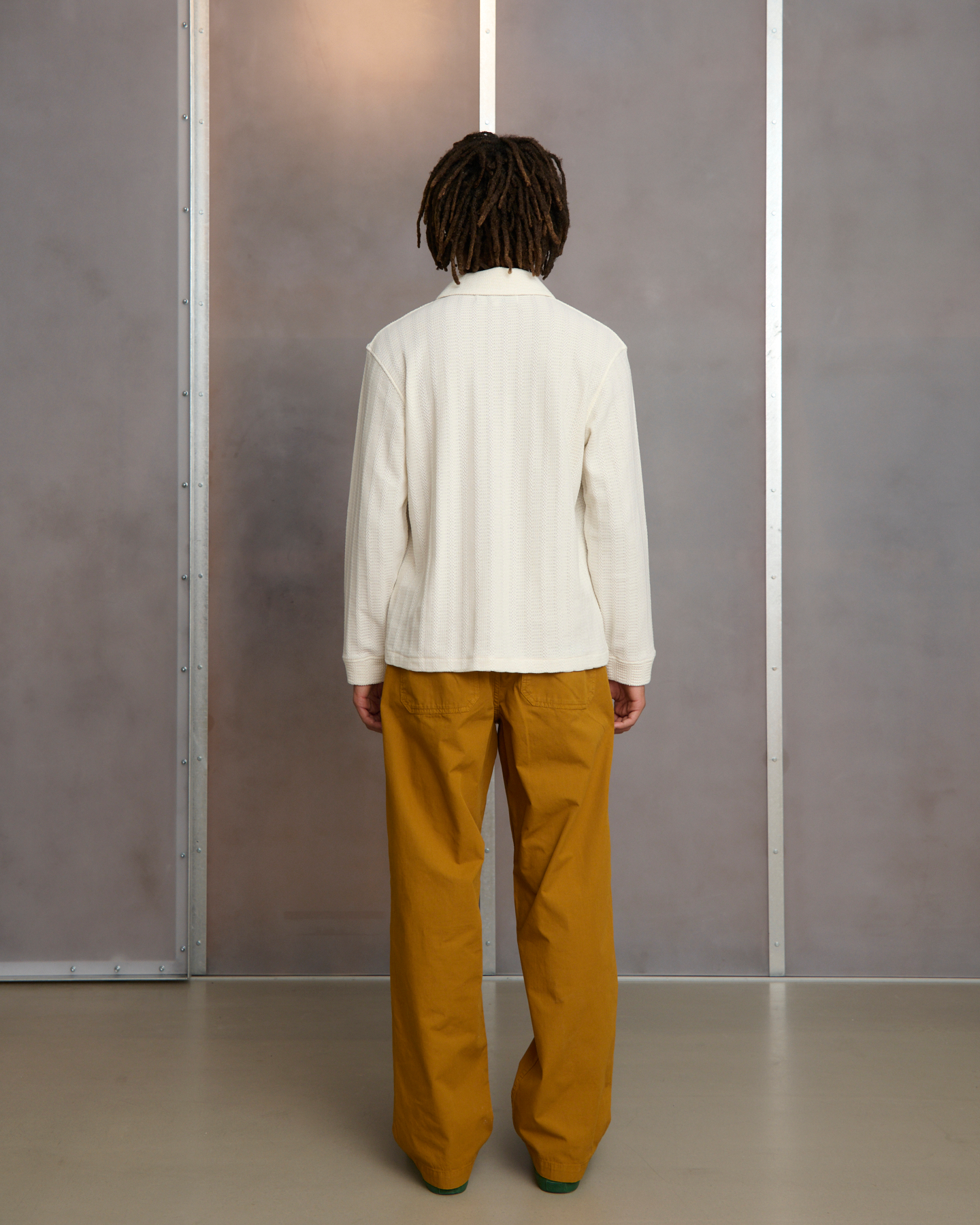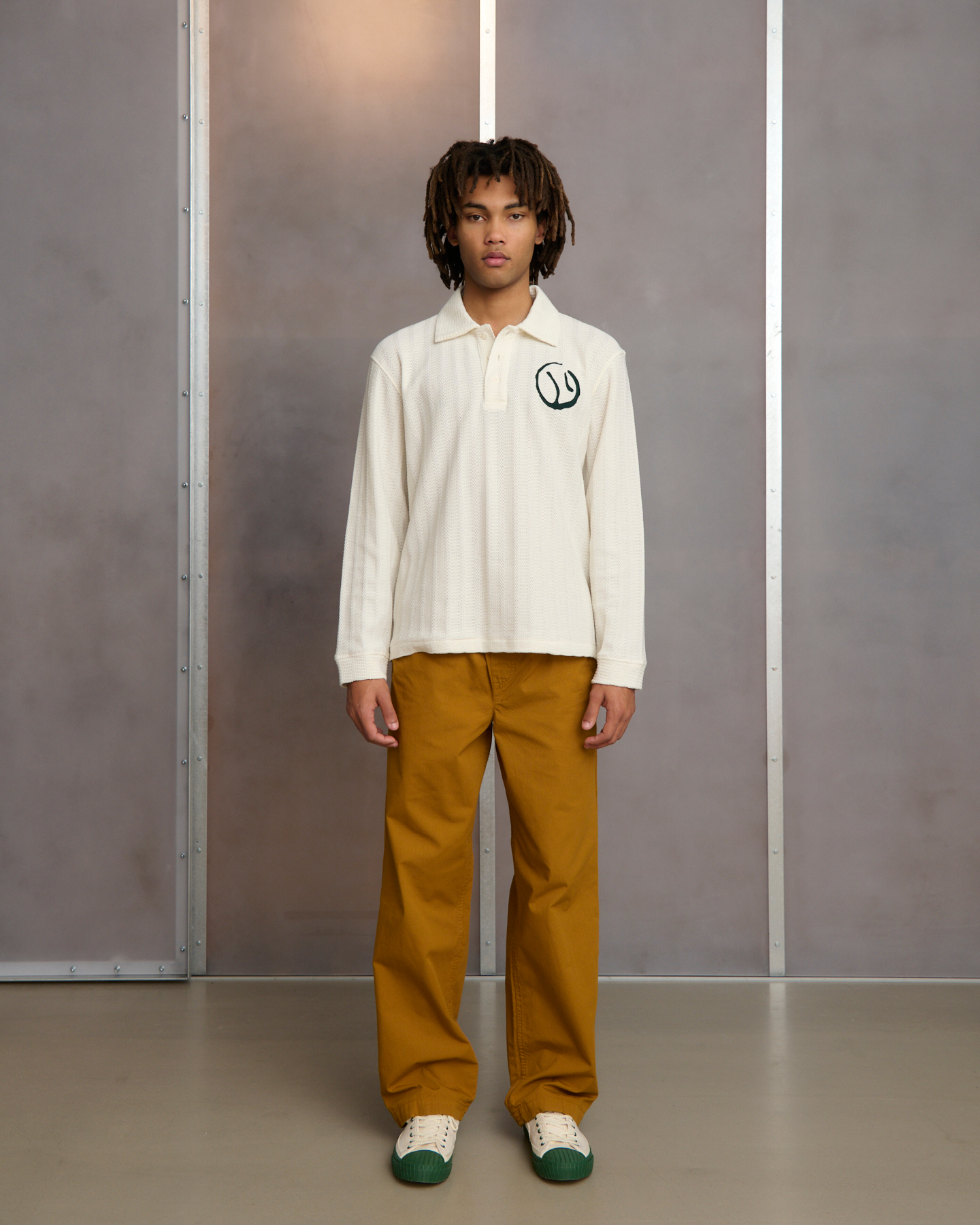 330gsm 50% Polyester + 50% Cotton Jersey Jaquard. Chainstitch embroidery on left chest.