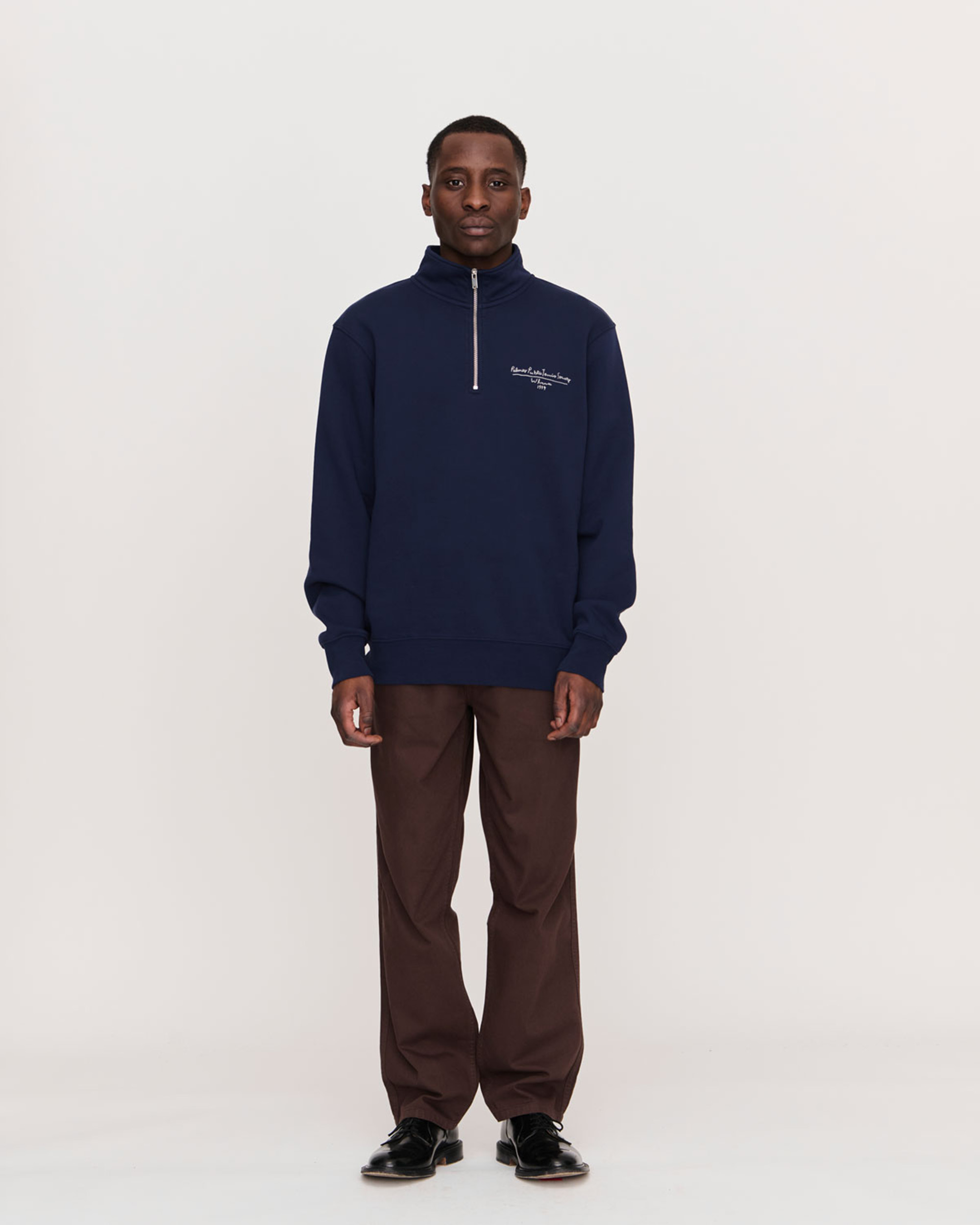 A relaxed hooded sweatshirt in a structured, waffle cotton. Pre-washed for a worn-in feel. Subtle embroidery on front right side. 2-way YKK zipper.