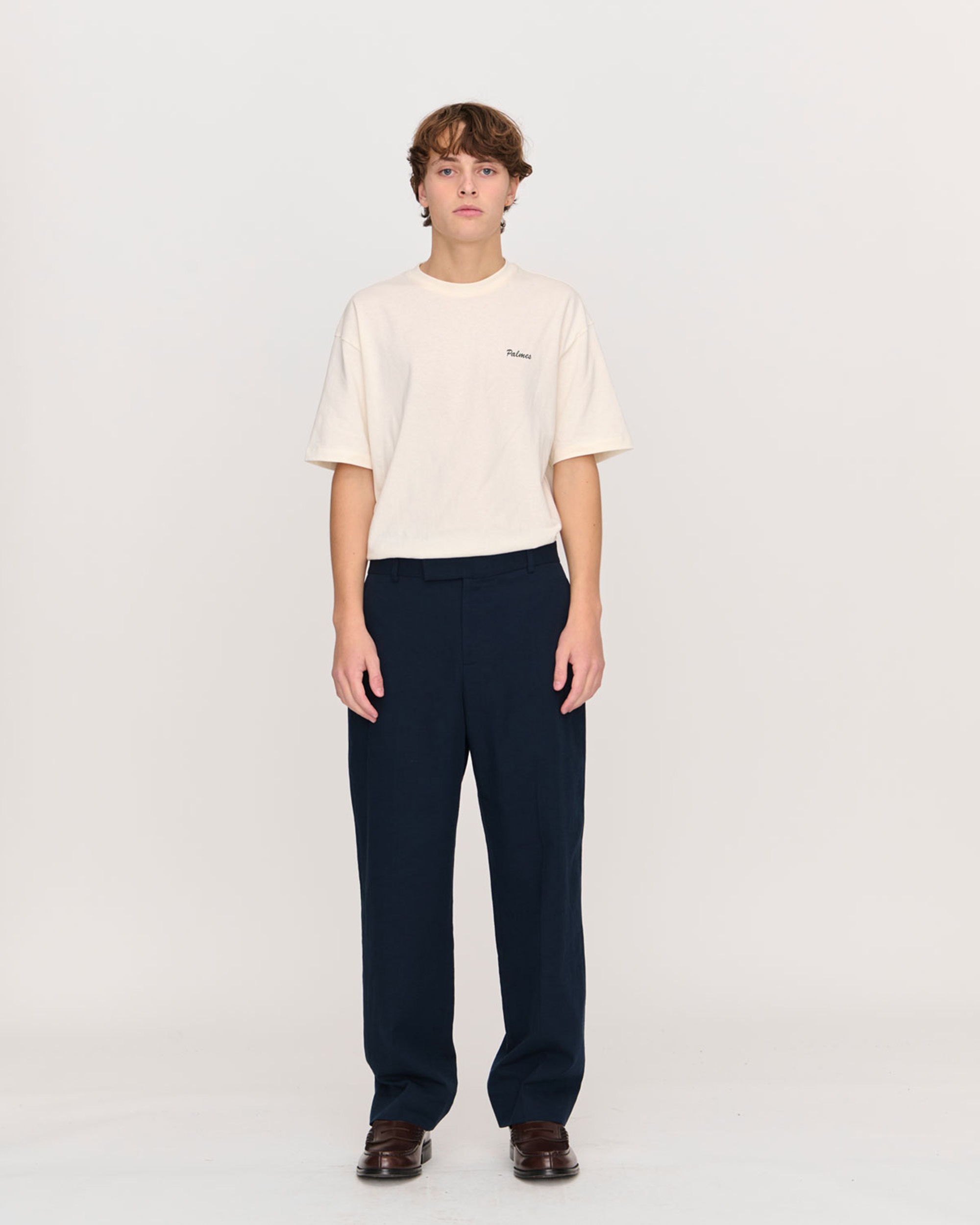 The suit trousers come with a wide leg and single front pleat, designed with a high rise and crafted in a cotton fabric with a subtle texture for understated character and allowing for wear on warmer days. Slightly exaggerated dimensions bring a hint of playfulness to the silhouette while allowing for easy wear as part of a suit or even with a tee and a pair of casual shoes. Button, YKK zip and hook-and-eye closure. Cut from 100% cotton fabric from a Spanish mill.