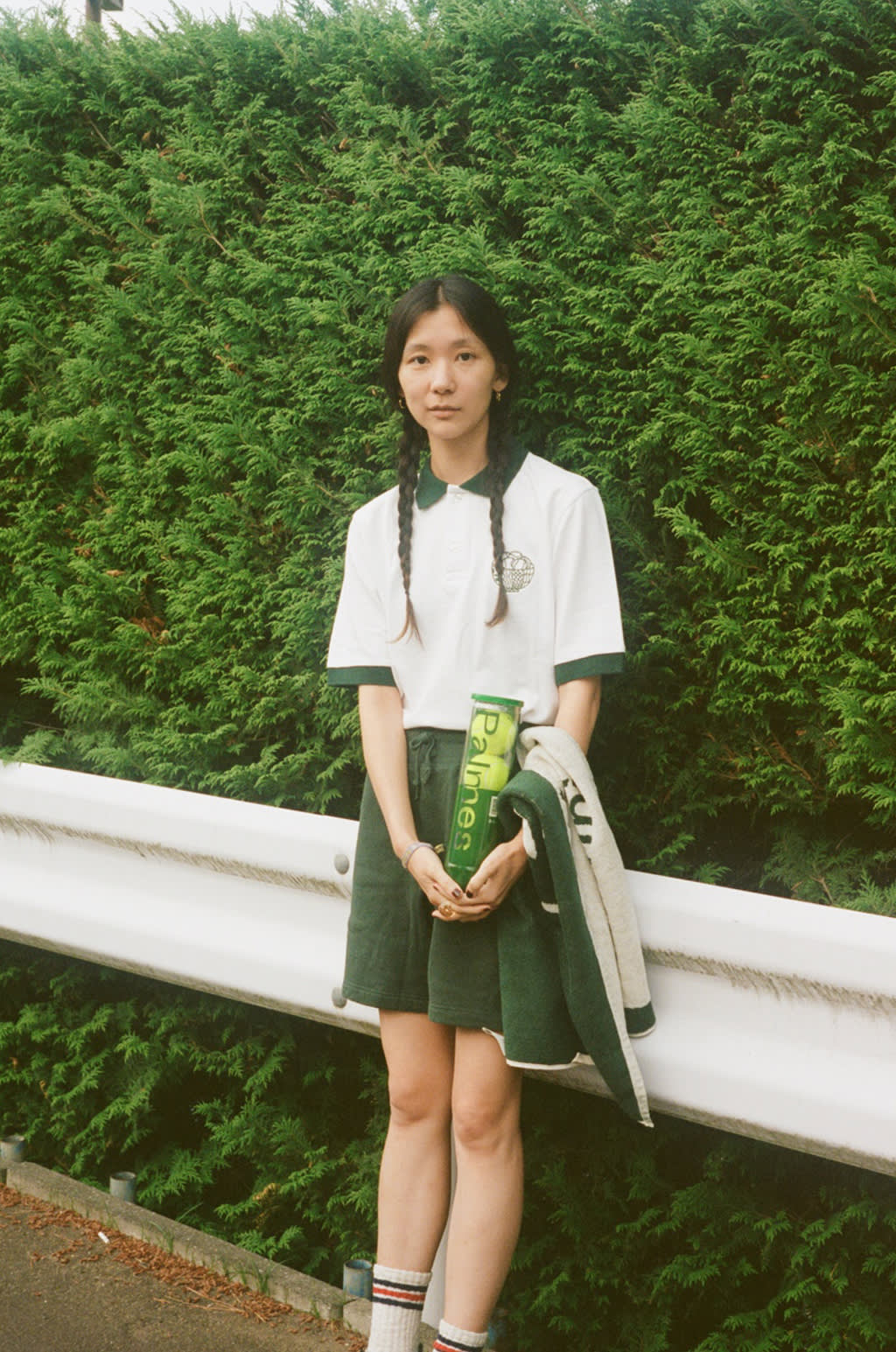 On the shoot, Iwasaki says: "The Den-en is just around the corner from my house and I always wanted to shoot something there. For this series, it wasn't so much about playing tennis there but more about going there to experience tennis; the feeling of the game. The idea for me is to always convey a narrative, somewhat like reading a novel. On this day, I brought my friends Aiko and Ryo along on a crisp morning. We went for a walk around the neighborhood, ate a stack of pancakes, drank lots of green tea and just took in the scenery of Den-en."