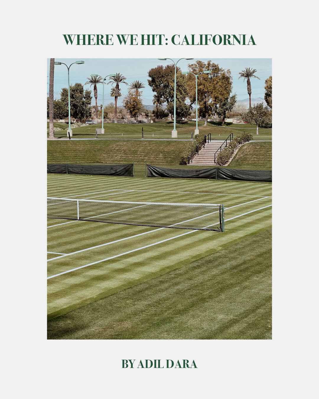 For this edition, friend of Palmes, graphic designer extraordinarie and owner of The Courts, the world's most beautiful tennis hotel, Adil Dara guides us to his favorite courts of California.