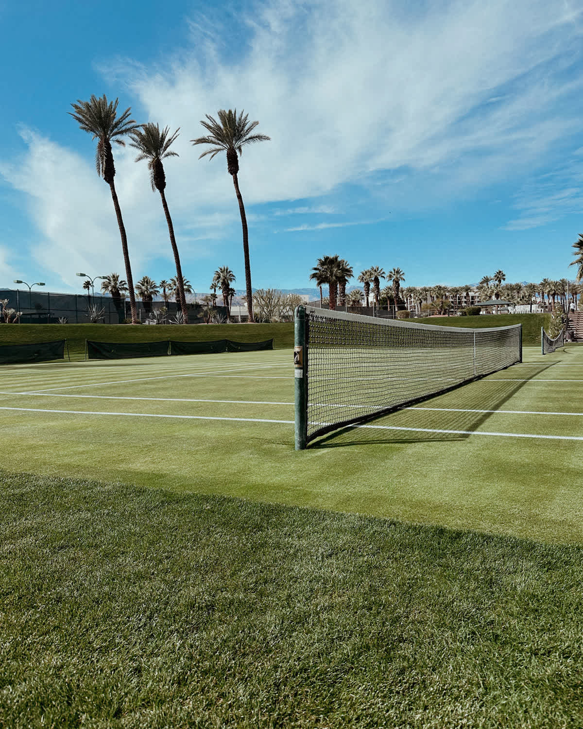 Two grass courts grow in the desert! We get friends together to play on these courts every year during the Indian Wells Tournament which happens right down the street. Hitting balls barefoot in the grass surrounded by mountain views is very nice.